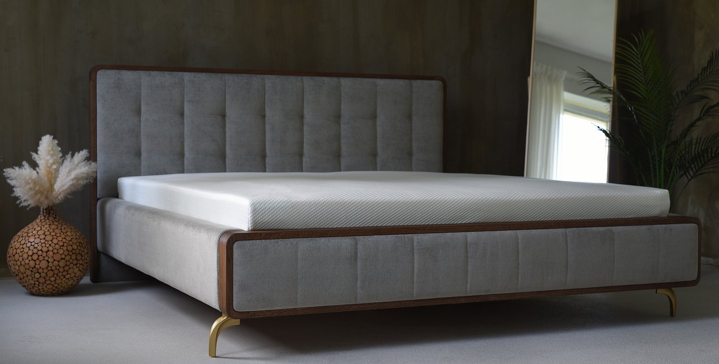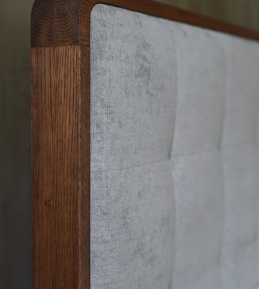 Ši lova išsiskiria savo formomis ir rafinuotumu. Ąžuolo detalės suteikia solidumo. Galima suasmeninti pasirenkant audinį bei medžio spalvas.
