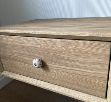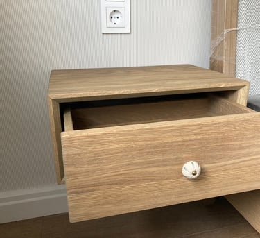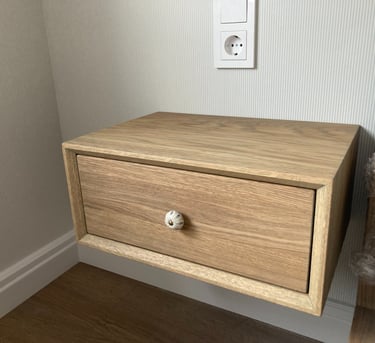 Stilinga, minimalistinių formų spintelė suteiks akcentą tiek miegamajame, tiek svetainei. Spintelė gaminama iš ąžuolo masyvo. Galima pasirinkti alyvos spalvą, bei išmatavimus.
