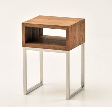 Stilinga, minimalistinių formų spintelė. Ąžuolo ir metalo derinys, kuris suteiks akcentą tiek miegamajame, tiek svetainei.